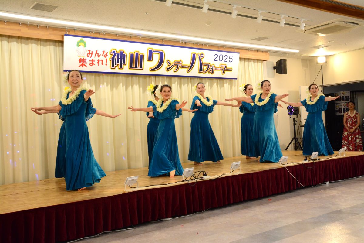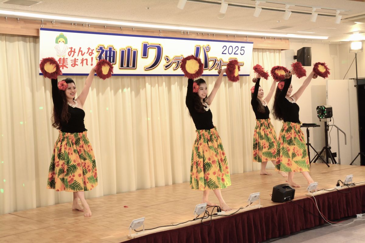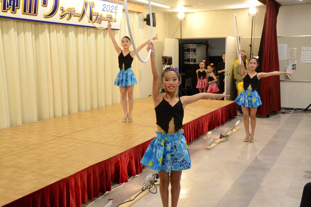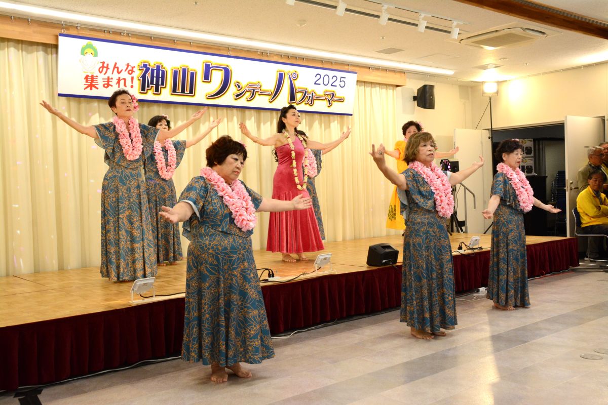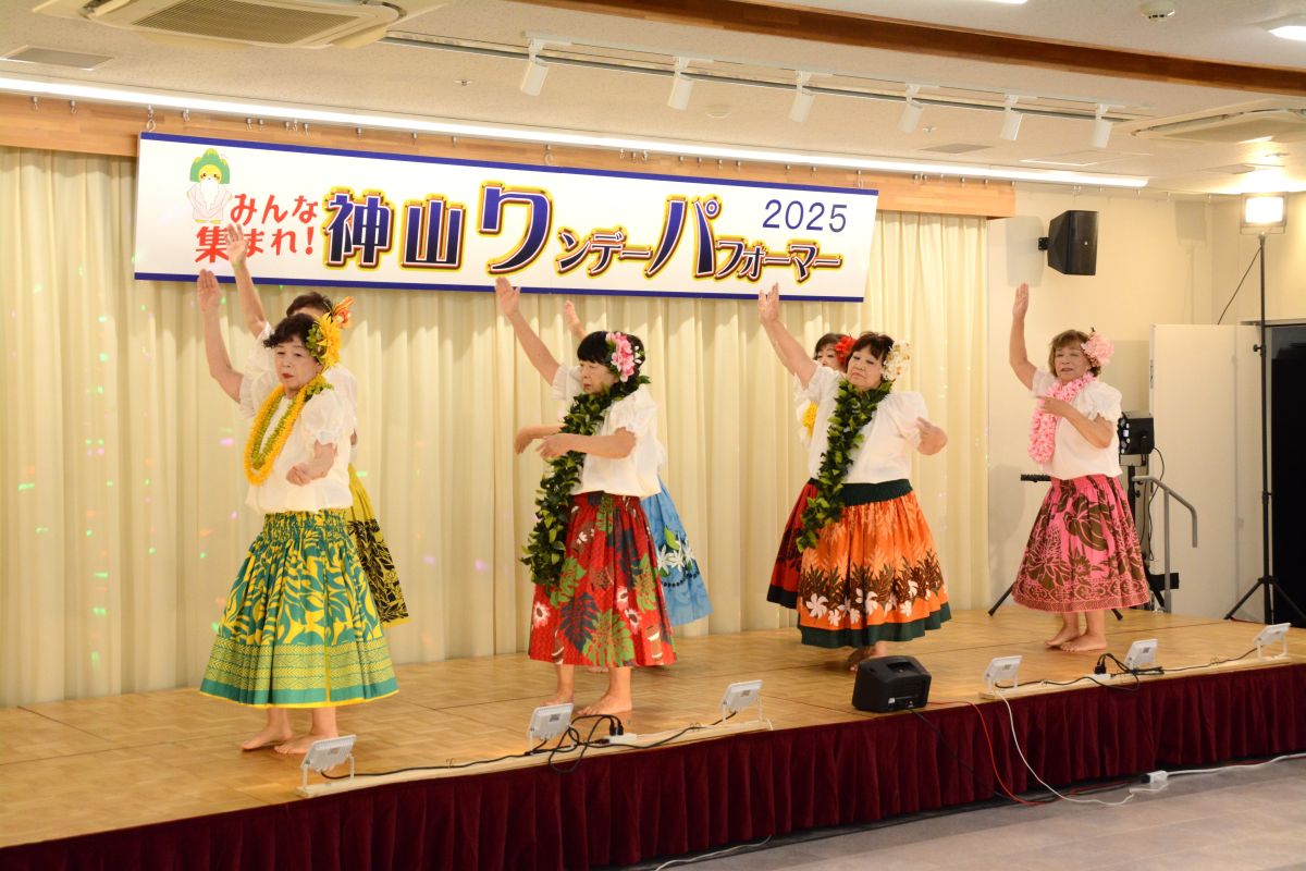 お天気にも恵まれ大勢のお客様が来場され大盛況となりました。「清の琴すずらん」の大正琴演奏、「神山フラサークル」のフラダンス。「華踊会」の民謡舞踊、「十六亭四四”坊」の落語、「ミルキーマイウェイ」のジャズコーラス、Na Maka O Pu’uwai Alohaのフラダンス、「愛寿クラブ」の歌謡舞踊。「修文学院高等学校音楽部箏曲班」の琴演奏。「マカラニフラスタジオ神山教室」のフラダンス、「大正琴ふれあい」の大正琴演奏。「ユークフルライフ」のウクレレ演奏、「太極拳神山クラブ」の太極拳演舞、「修文学院高等学校ダンス部」のダンス、「セイシンRG」の新体操、14組191名の皆様にはどなたも練習の成果を発揮され、素晴らしいパフォーマンスを見せてくださいました。そして、運営に携わってくださったスタッフの皆様には心より感謝申し上げます。