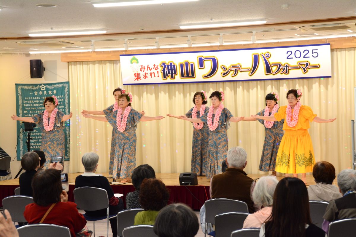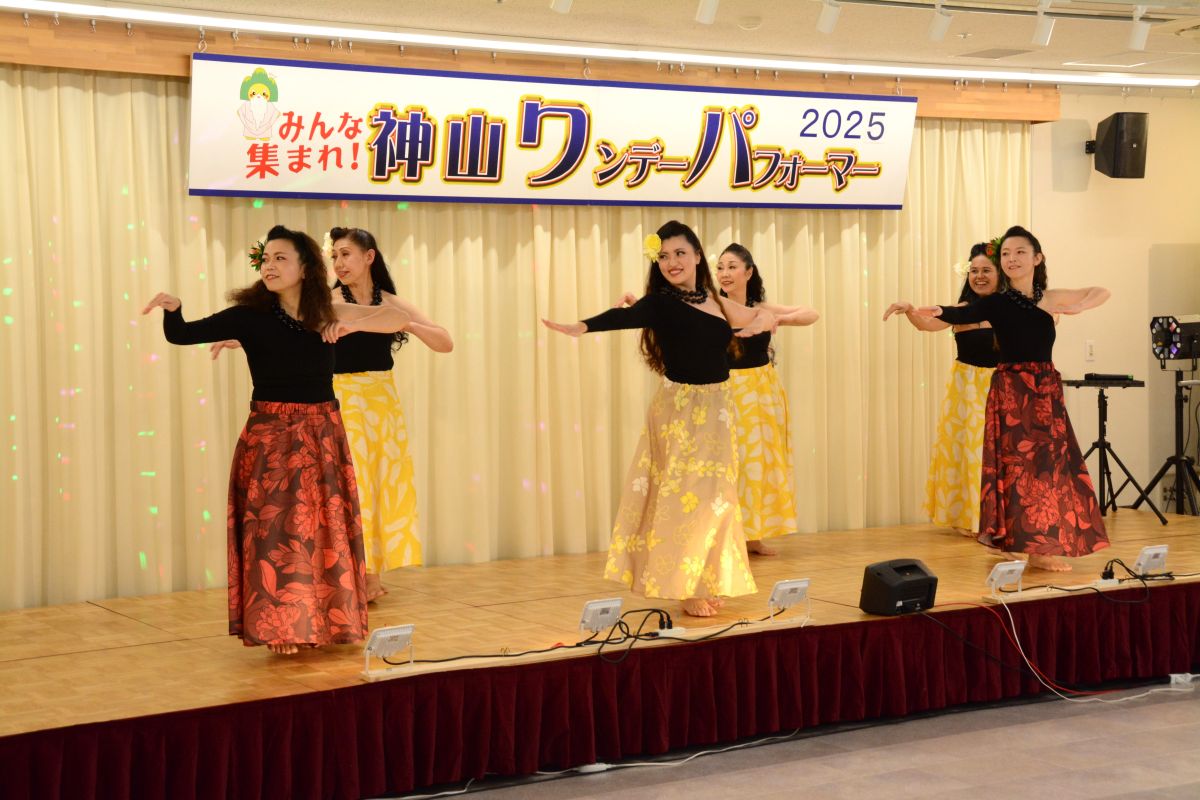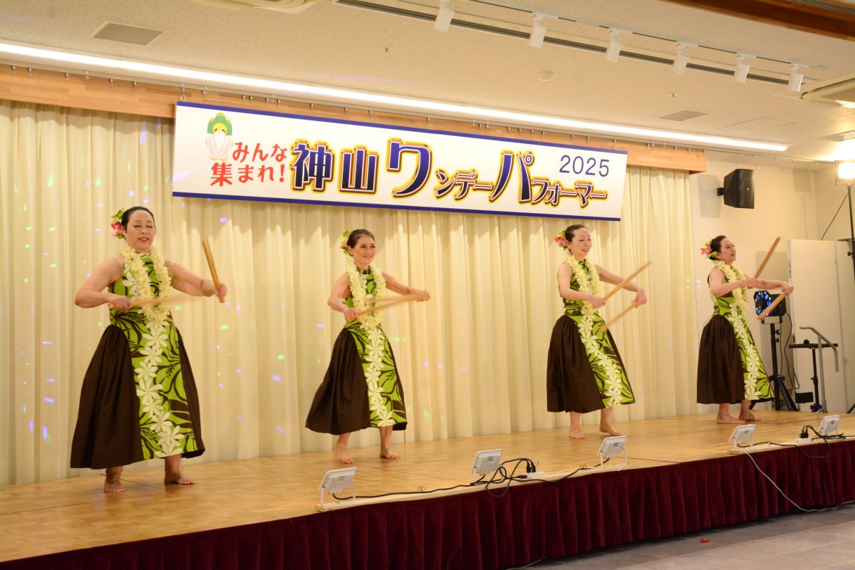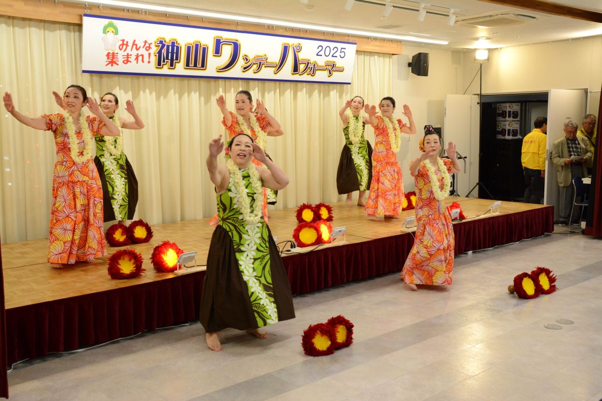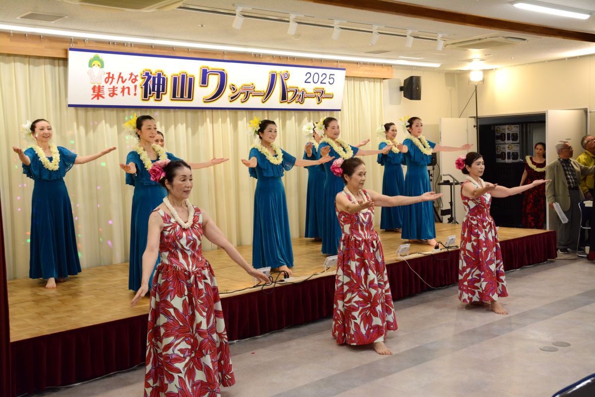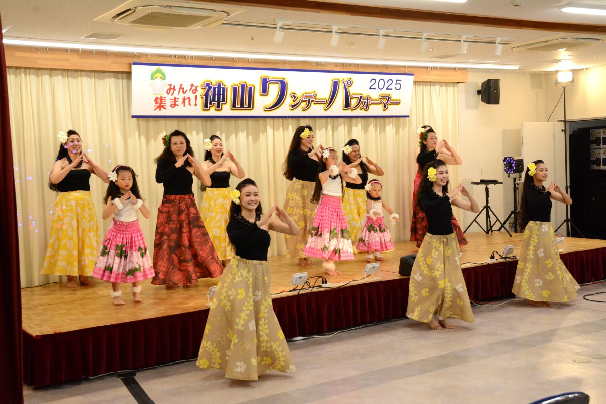 お天気にも恵まれ大勢のお客様が来場され大盛況となりました。「清の琴すずらん」の大正琴演奏、「神山フラサークル」のフラダンス。「華踊会」の民謡舞踊、「十六亭四四”坊」の落語、「ミルキーマイウェイ」のジャズコーラス、Na Maka O Pu’uwai Alohaのフラダンス、「愛寿クラブ」の歌謡舞踊。「修文学院高等学校音楽部箏曲班」の琴演奏。「マカラニフラスタジオ神山教室」のフラダンス、「大正琴ふれあい」の大正琴演奏。「ユークフルライフ」のウクレレ演奏、「太極拳神山クラブ」の太極拳演舞、「修文学院高等学校ダンス部」のダンス、「セイシンRG」の新体操、14組191名の皆様にはどなたも練習の成果を発揮され、素晴らしいパフォーマンスを見せてくださいました。そして、運営に携わってくださったスタッフの皆様には心より感謝申し上げます。