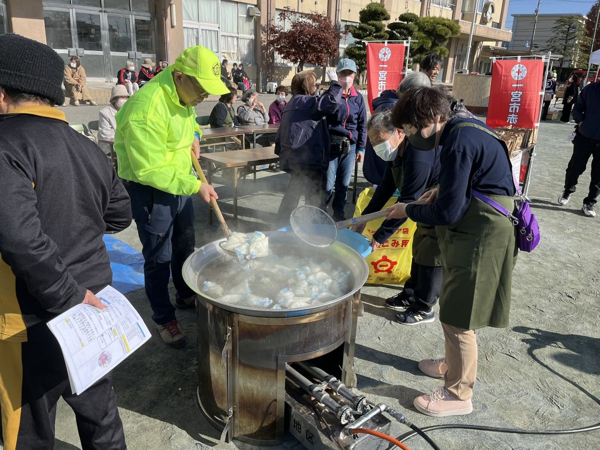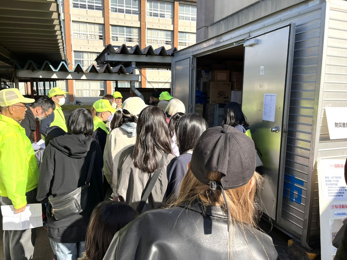 訓練後、参加者約100名は受付時に受取ったリストバンドの番号によるお楽しみ抽選会があり、当選者には素敵な賞品と全員に炊出しごはんと参加賞が配布されました。