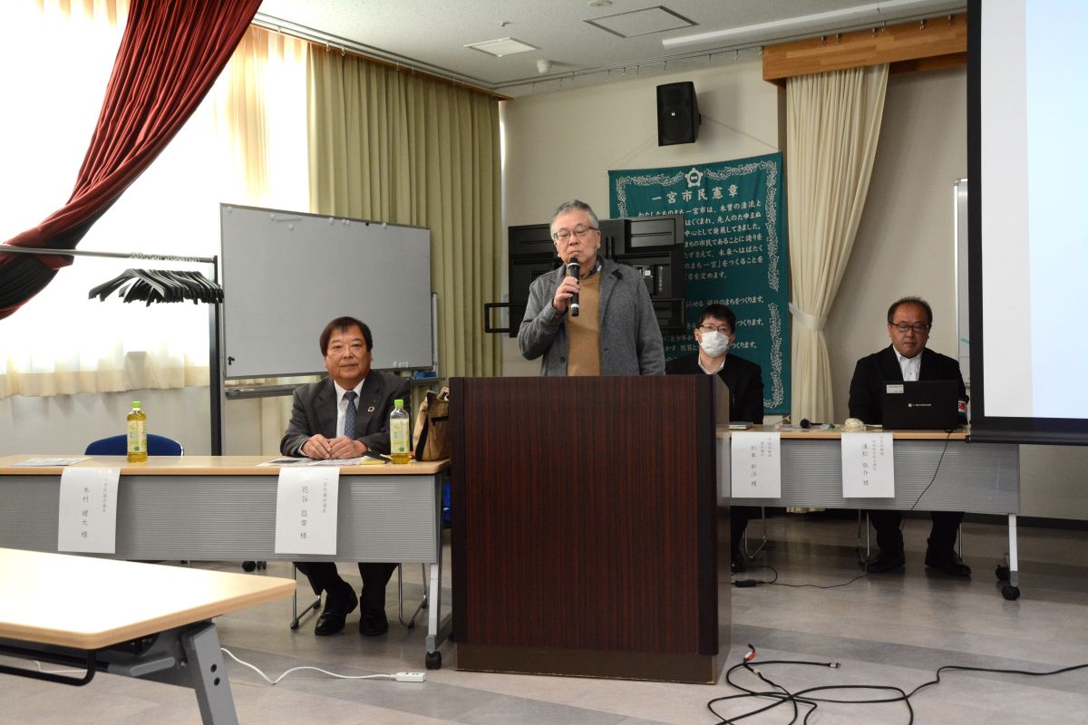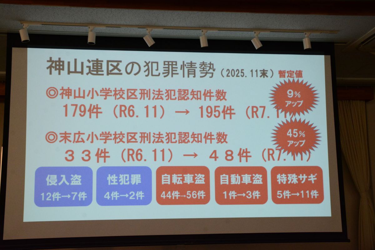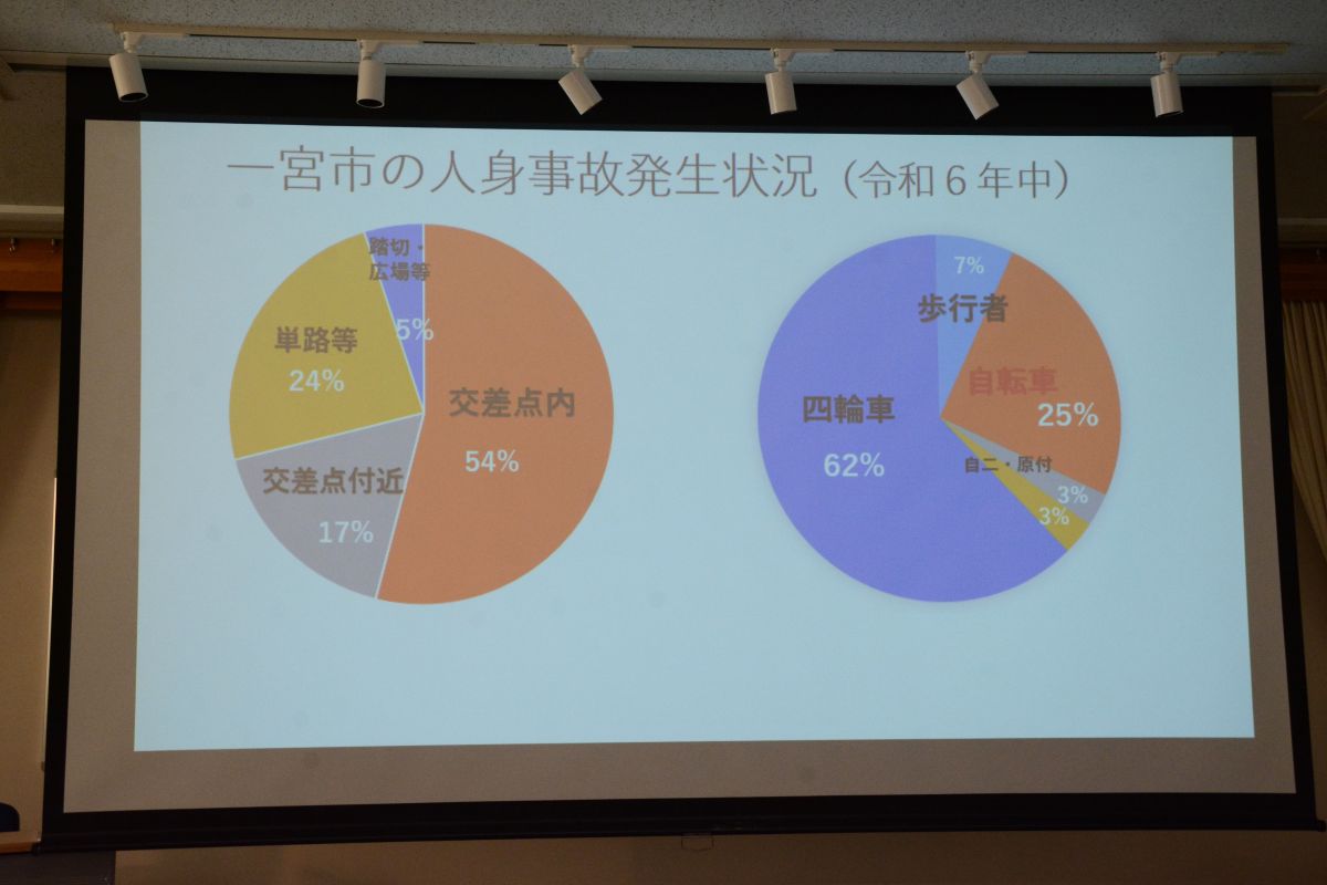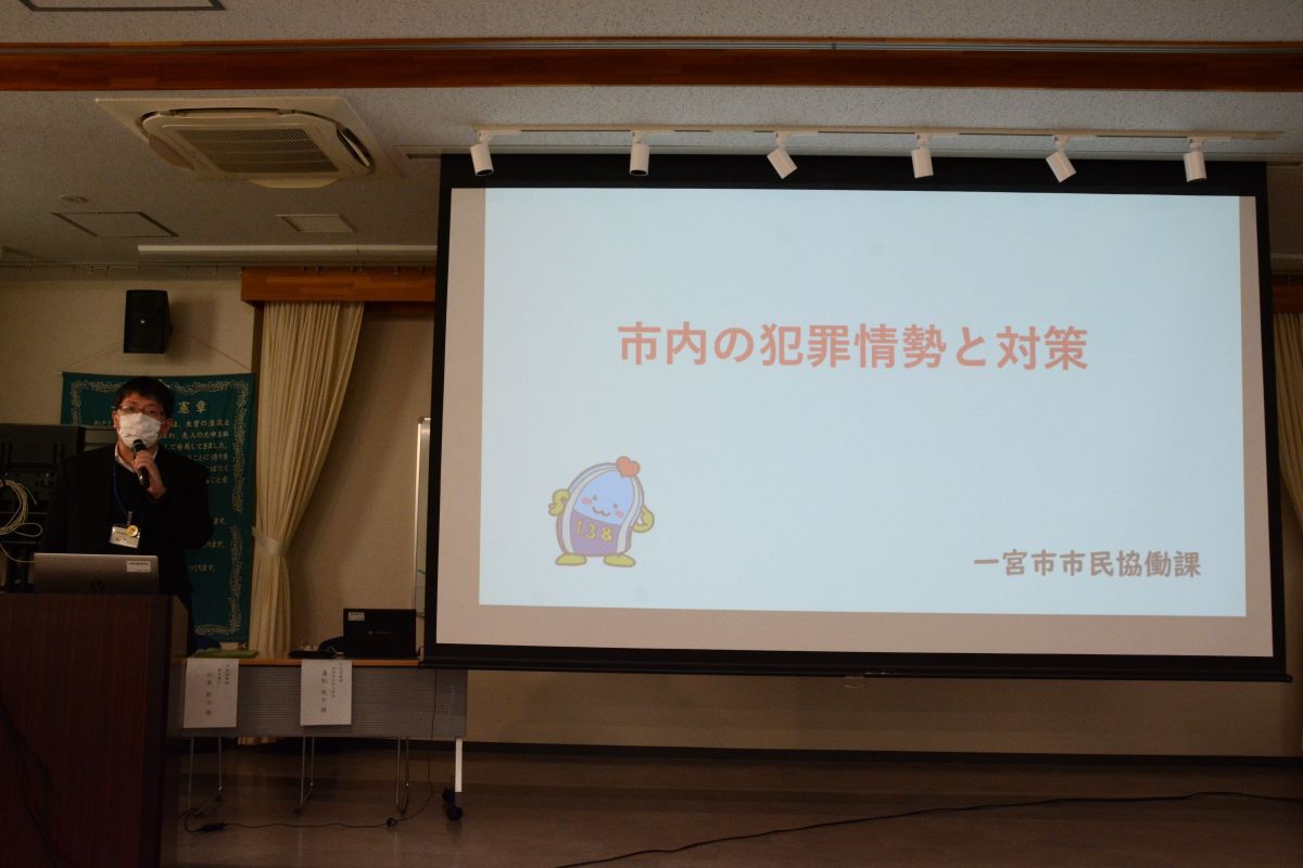 第1部の交通安全講習会では一宮市・市民協働課職員より交通事故情勢や歩行者・運転手の気をつけたいこと、令和8年4月1日より施行される自転車違反の青切符導入を中心に説明されました。第2部の防犯講習会では同・市民協働課職員より市内の防犯情勢と対策について、侵入盗や特殊詐欺の手口や対策について説明されました。