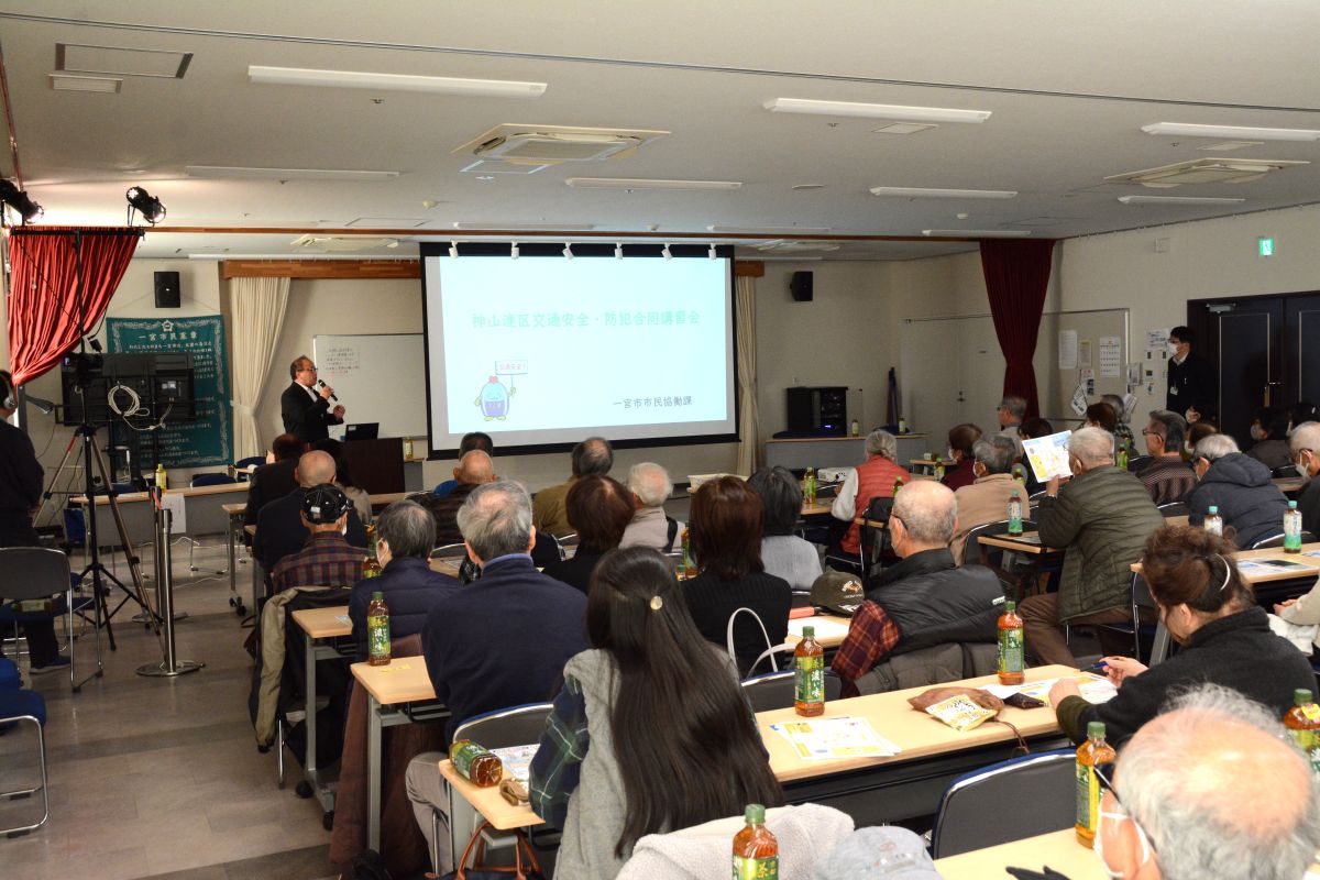 12月17日(水)午前10時より神山公民館大会議室で、町会長、神山連区交通安全推進委員、各町内の防犯員、神山連区地域づくり協議会・安心安全部会委員が参加して、交通安全・防犯合同講習会を行いました。