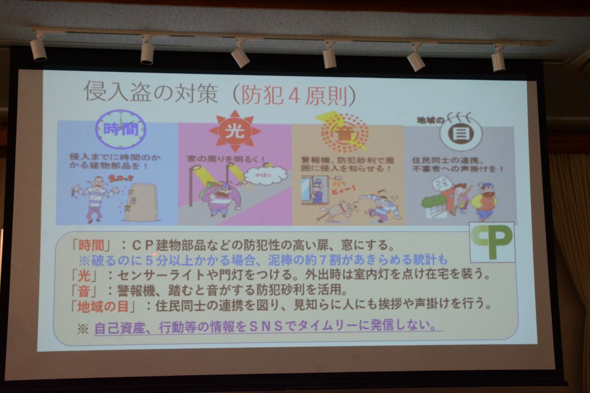 参加された方は今回の講習会で学んだことを町内会に伝えていただき、一人でも交通事故の被害者・加害者にならないよう、犯罪に巻き込まれないよう注意いたきたくお願いします。