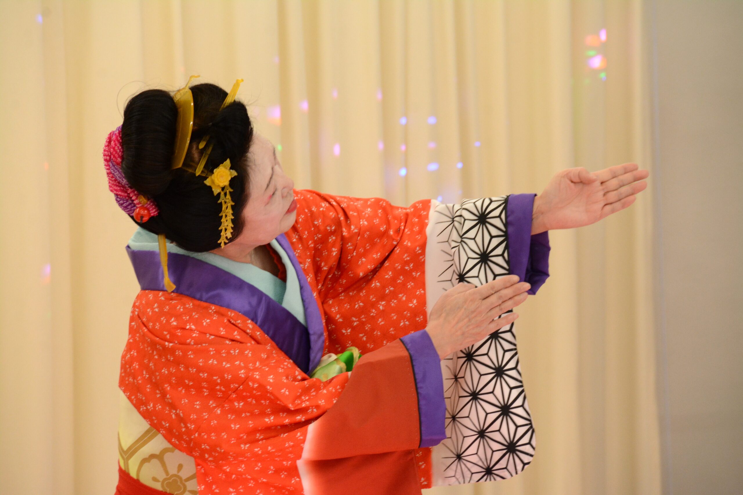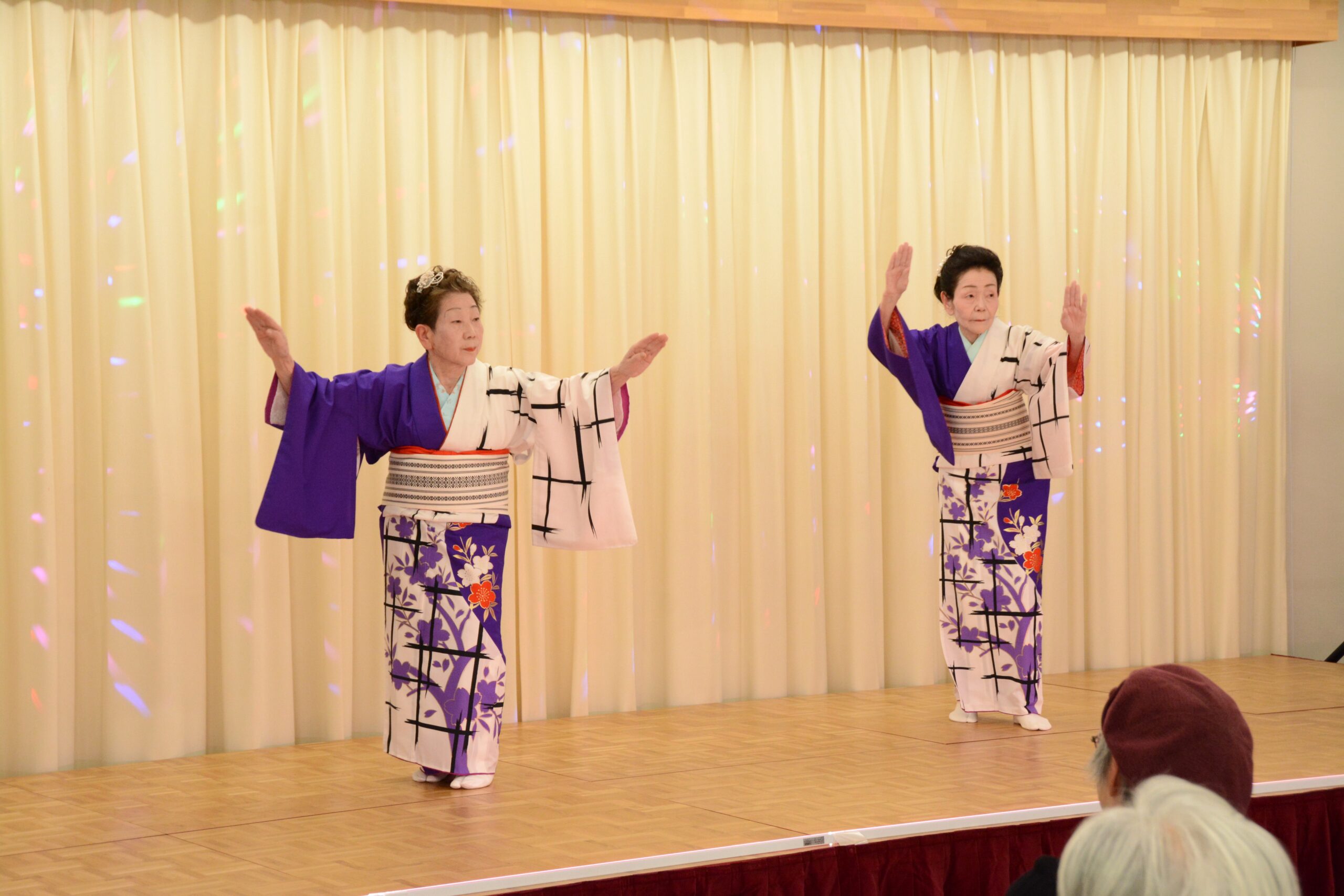 カラオケ、大正琴演奏、舞部、オカリナ演奏と多数のグループ発表がありました。最新演歌、古典舞部ほかバリエーション豊富な演目で、鑑賞に来られた方々を楽しませていただきました。