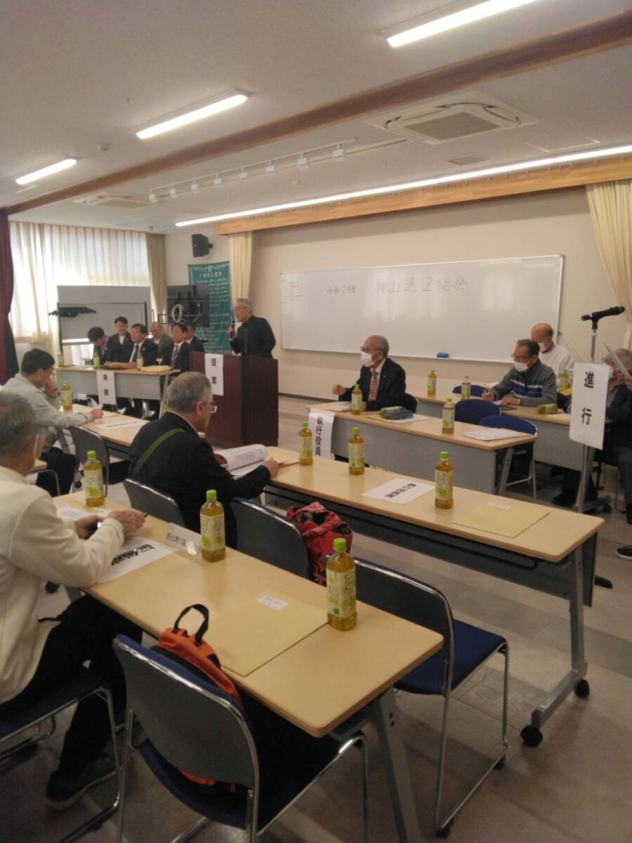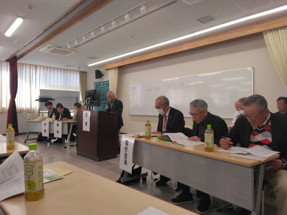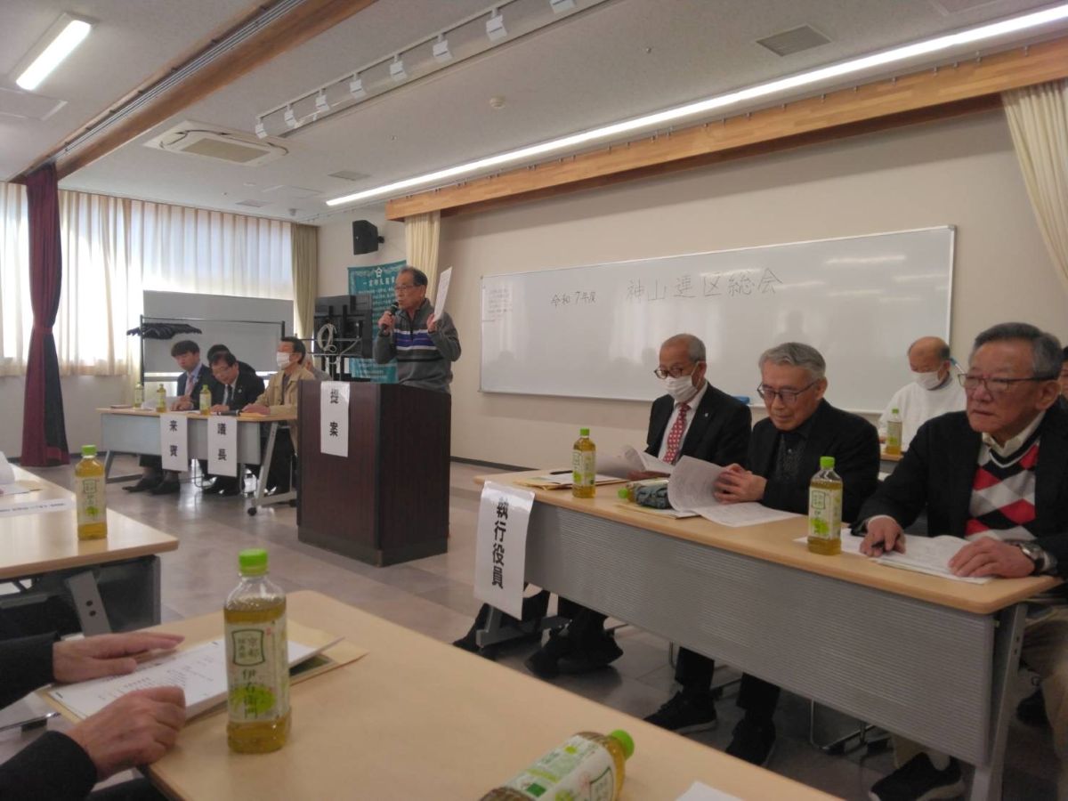 3月20日(金・祝)午前9時30分より神山公民館大会議室で約120名が出席して、神山連区運営協議会、地域づくり協議会、社協神山支会、町会長会総会を行いました。
