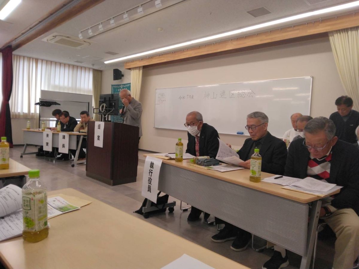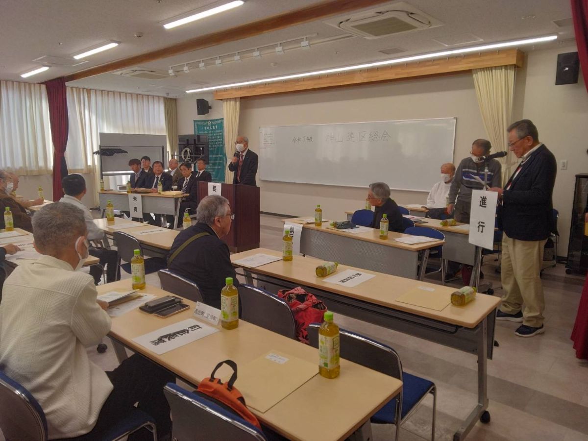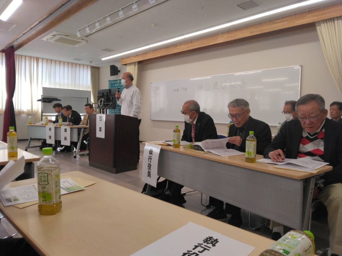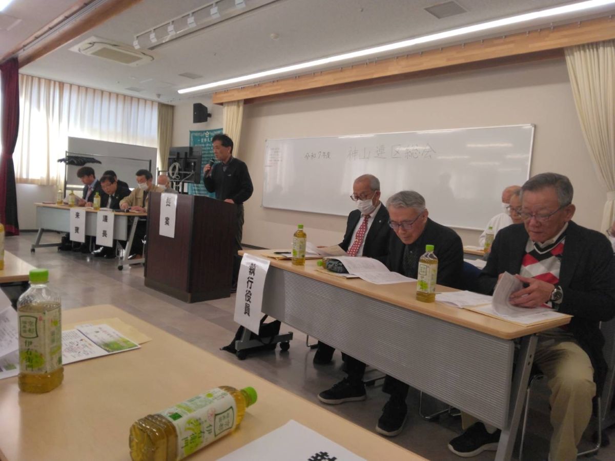 3月20日(金・祝)午前9時30分より神山公民館大会議室で約120名が出席して、神山連区運営協議会、地域づくり協議会、社協神山支会、町会長会総会を行いました。