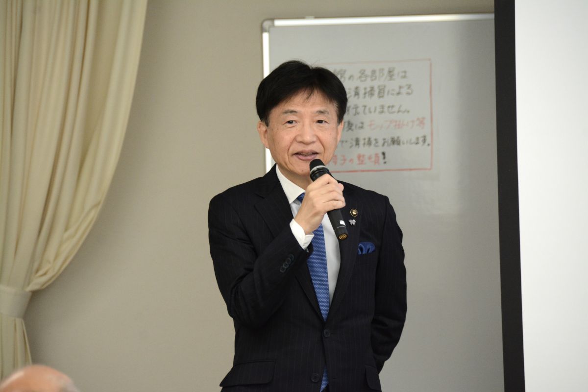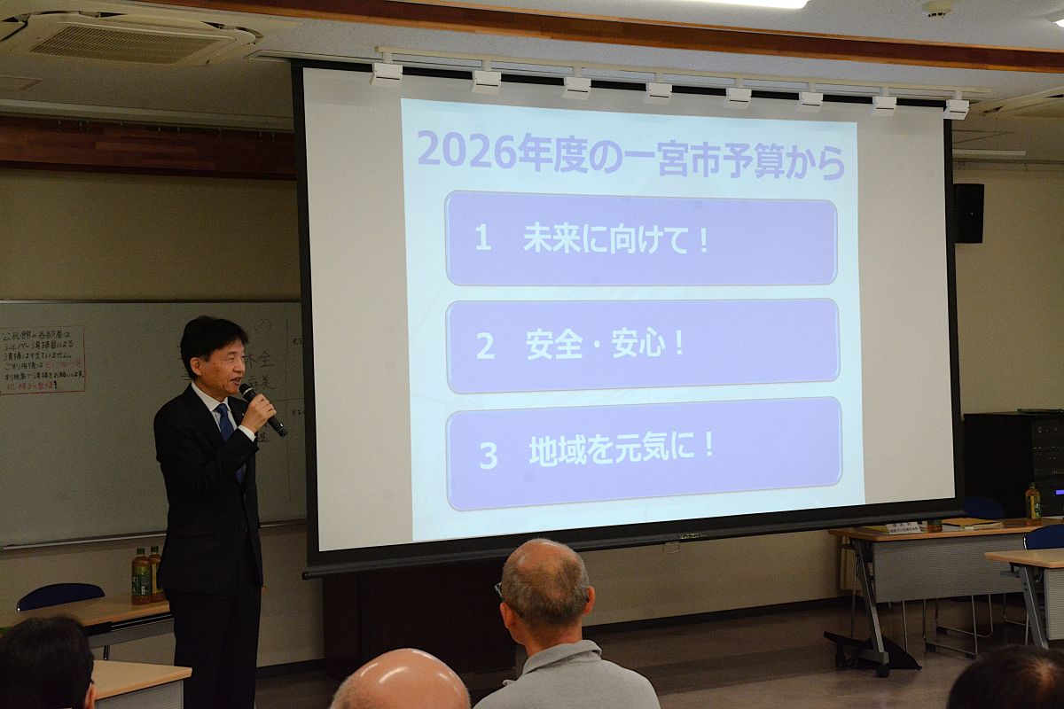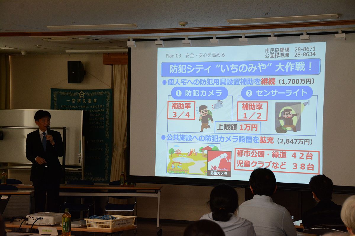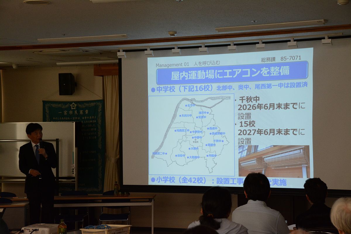 10時からの第2部は市主催の町会長会議で、中野市長から令和8年度一宮市の取組みについてプロジェクタを使用して説明されました。その後、市・市民協働課職員より町会長の業務やお願い等、日本赤十字社より社資のお願いについて説明がありました。
